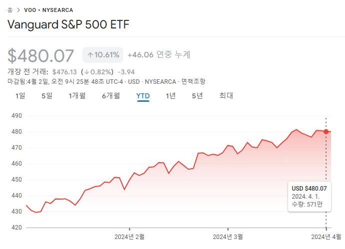출처 : 구글 금융 VOO (Vanguard S&P 500 ETF)