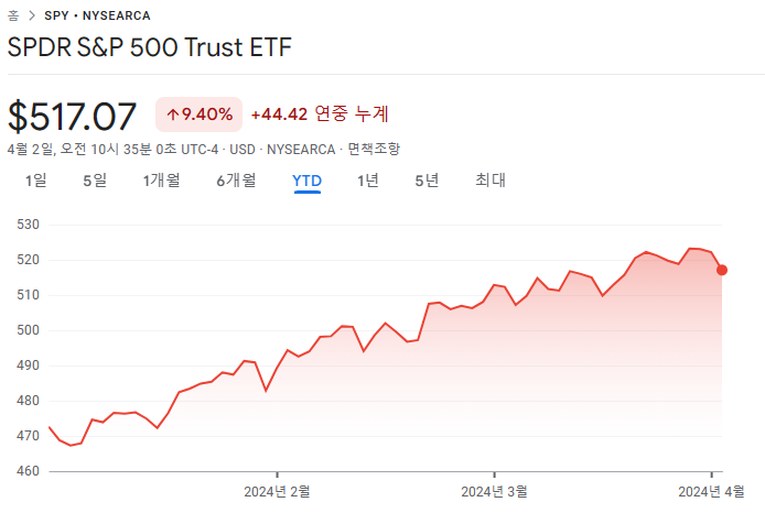 출처 : 구글 금융 SPY (SPDR S&P 500 ETF Trust)